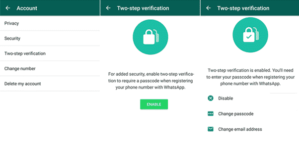 The two-step verification from WhatsApp gives you a six-digit passcode when you provide your email address during the verification and once the passcode is activated no one will be able to access your WhatsApp or verify your number without a passcode.