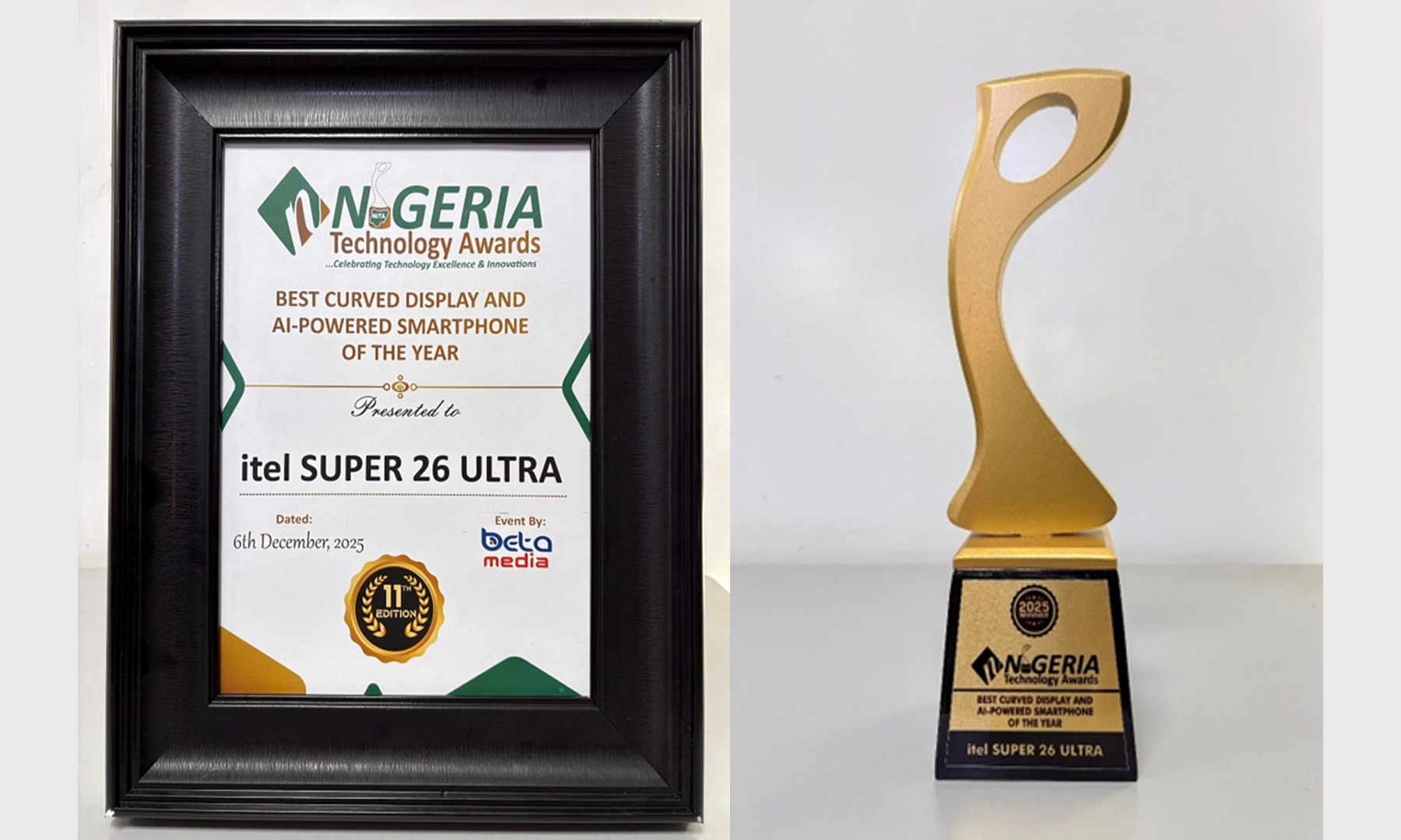itel SUPER 26 Ultra Wins “Best Curved Display and AI-Powered Smartphone of the Year” at the 2025 Nigeria Technology Awards